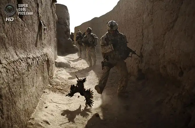 Канадские солдаты во время патрулирования. Они были атакованы с помощью гранат из-за стены. Афганистан. Салават, Кандагар. 11 сентября 2010 года.