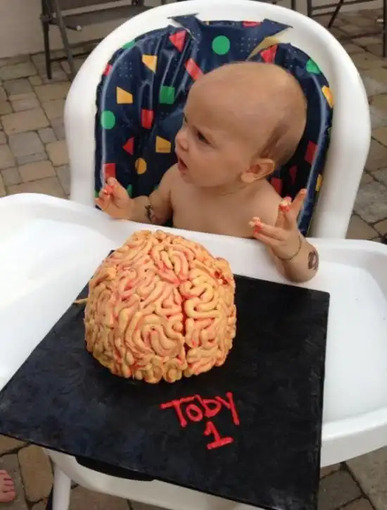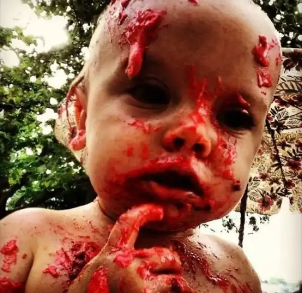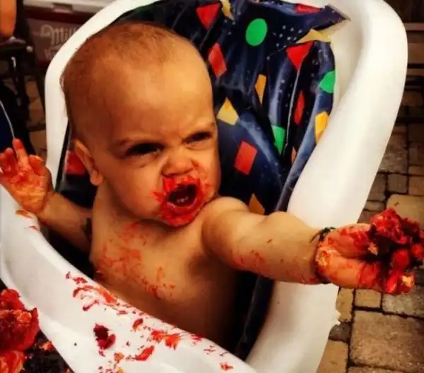 Смотрим далее на фотоотчет того, как празднование первого дня рождения этого забавного малыша превращается в кадры из хоррора или фильма ужасов :)