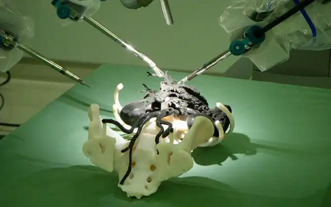 На фото — 3D печатная лапароскопическая система подготовки для хирургического робота Да Винчи.