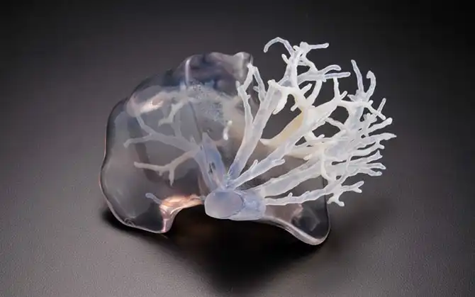 3D печать прозрачной модели печени из фотополимерных смол. Исследования Энтони Аталаса в 3D органах, в конечном счете, могут устранить необходимость в списках доноров и положат конец испытаниям на животных.