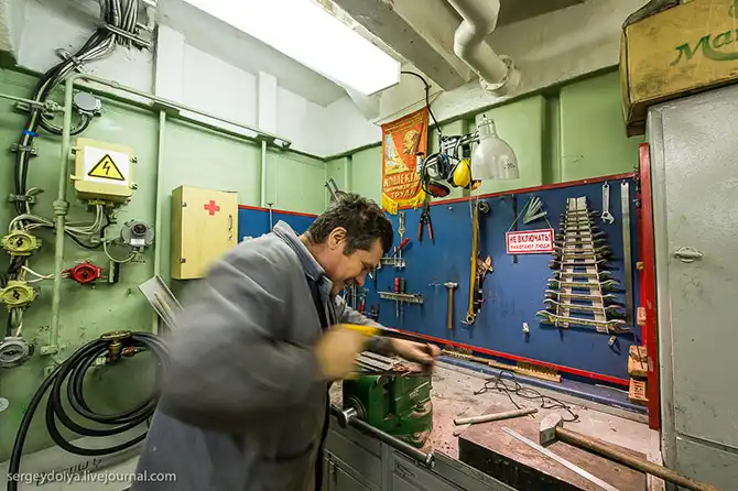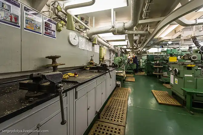 На ледоколе есть несколько мастерских. Одна из них токарная: