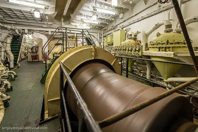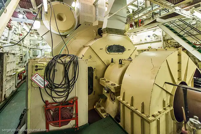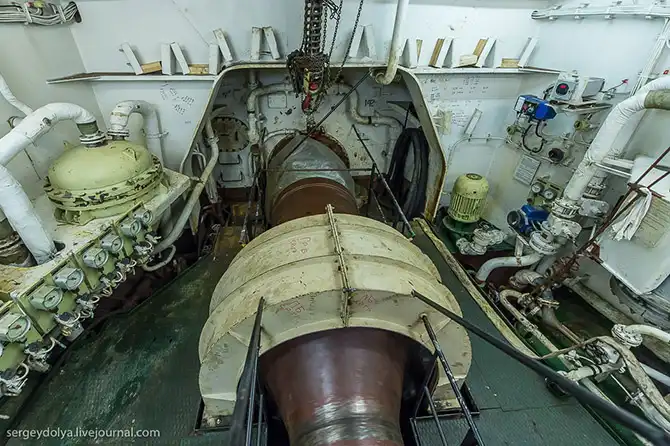 В этой части корабля вал выходит наружу и переходит в винт корабля: