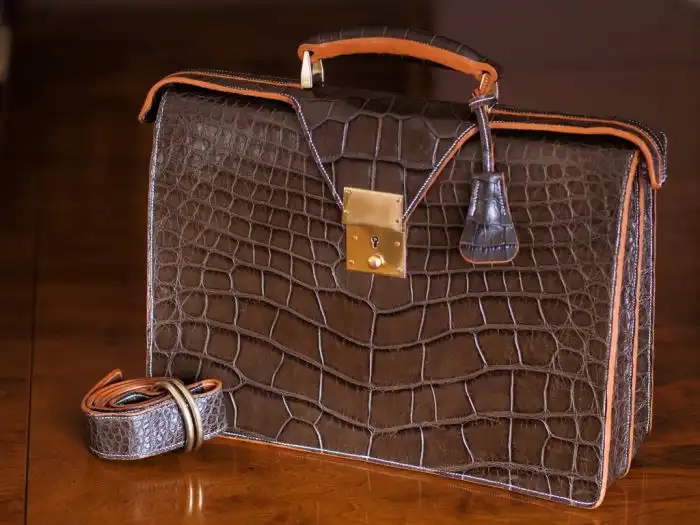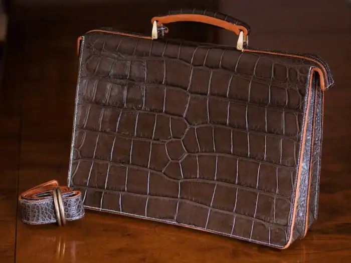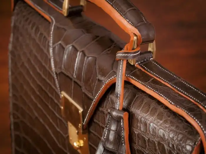 Интересный фотоотчет о том, как вручную производятся дорогостоящие сумки и портфели из натуральной крокодильей кожи.