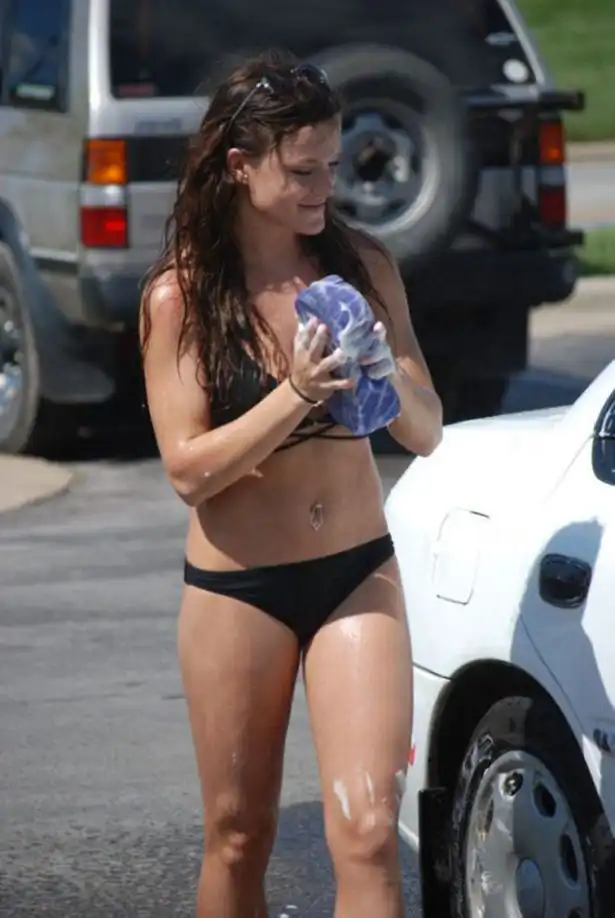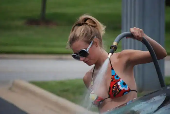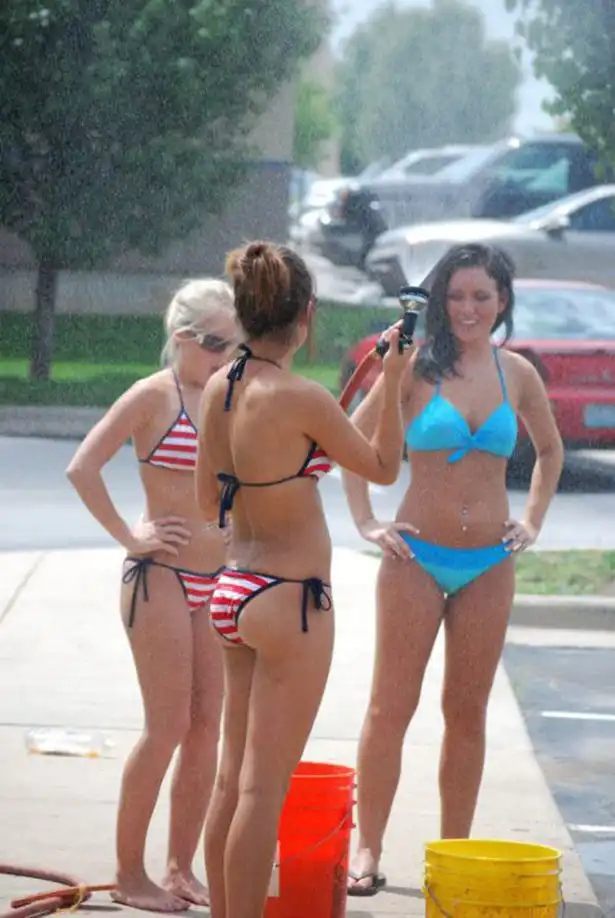 Девушки в бикини на автомойке