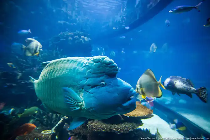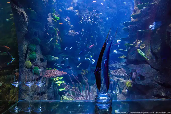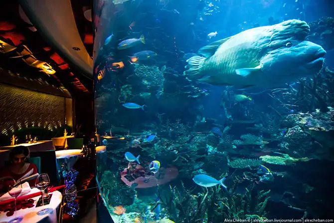В аквариуме ресторана Al Mahara 280тыс литров воды, здесь живет более 50 видов рыб:
