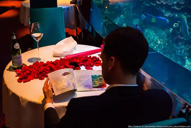 Для праздничных моментов предусмотрены опции заказа водолаза с табличкой «я тебя люблю» или «выходи за меня замуж». Это не шутка.