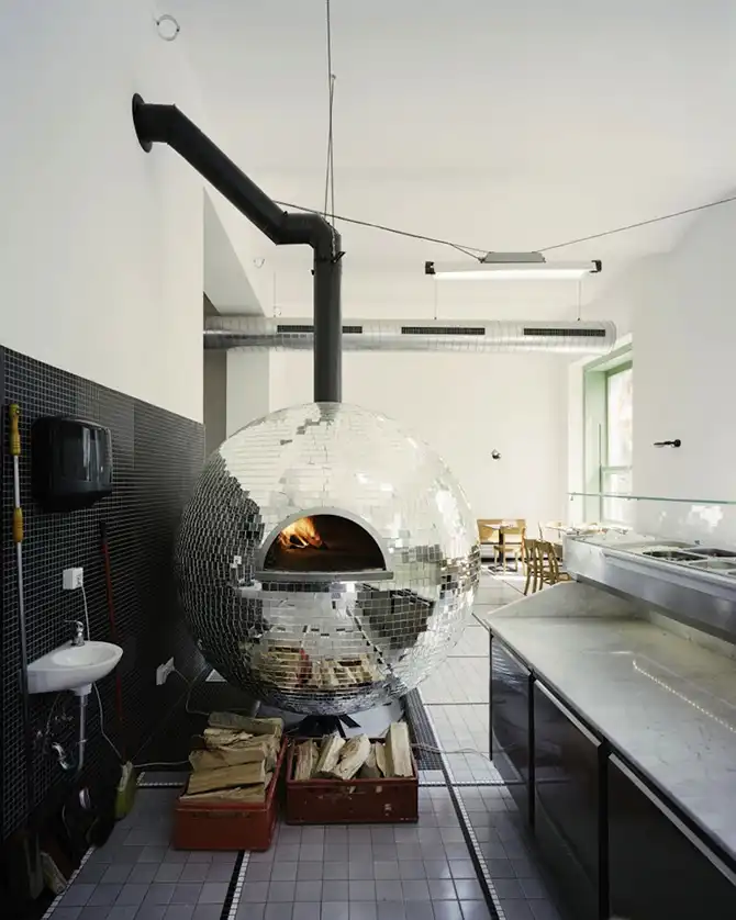 Разработанное австрийским архитектором Lukas Galehr для недавно открывшейся пицерии в Вене, эта печь для пиццы в виде диско-шара действительно очень функциональна. И, да, она вращается.
