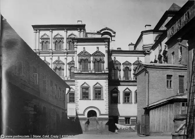 Совершенно удивительная старая фотография. С одной стороны старый дворец, а с другой – жилые помещения, даже белье сушится.