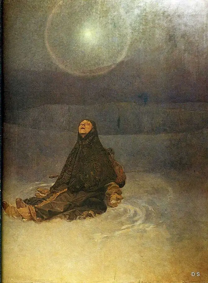 Вернулся домой, проявил, покрутил его туда-сюда и в результате написал картину «Зимняя ночь»: