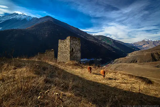 Не удержусь и выложу несколько фото с часовой экскурсии к башням Эрзи и на канатной дороге в ЛОК Армхи.