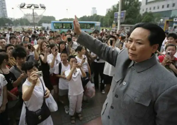 57-летняя Ян Чен из Китая зарабатывает на жизнь тем, что изображает Мао Цзэдуна. Немного макияжа, правильная прическа, грамотно подобранный костюм, и женщина превращается в копию легендарного коммунистического лидера. От зевак отбоя нет, так что в деньгах недостатка Ян Чен не испытывает.
