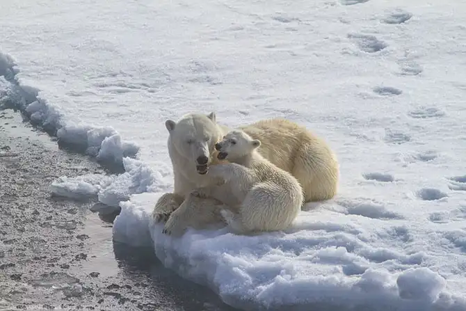 Доверяя своему носу, белые медведи способны забираться далеко на север от ближайшей земли. У них нет естественных врагов. Они не социальные животные и предпочитают жить в одиночестве. Единственное исключение – это мамы с маленькими медвежатами. Мать не только кормит медвежонка вначале его жизни, но и защищает от взрослых самцов. Время от времени они нападают на медвежат.
