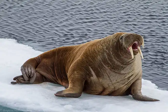 Крупные самцы все покрыты шрамами от драк со своими сородичами. Каждый большой морж стремится оберегать свой гарем и территорию от назойливых конкурентов. Поэтому им приходится проводить в боях большую часть жизни.