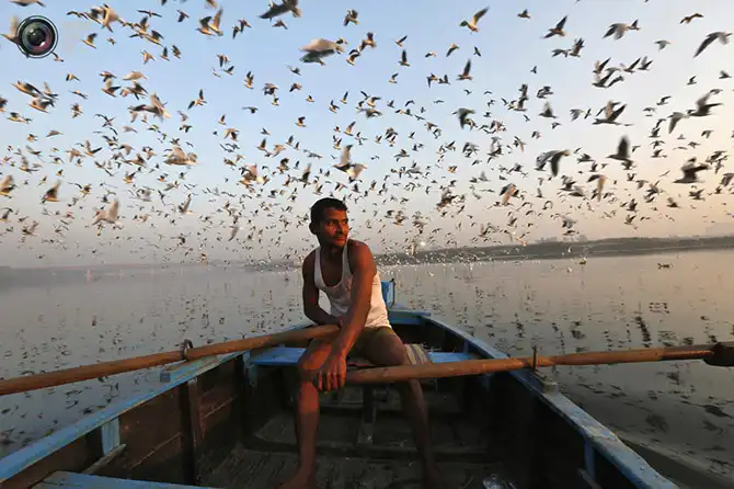 Мужчина плывёт по реке Ямуна ранним утром в Дели, Индия.