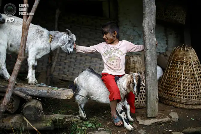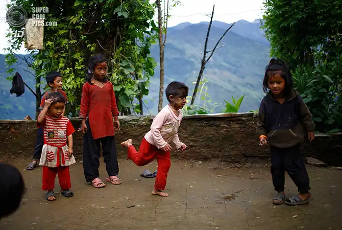 7-летняя Мандира Будхатоки играет со своими друзьями.