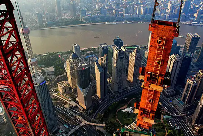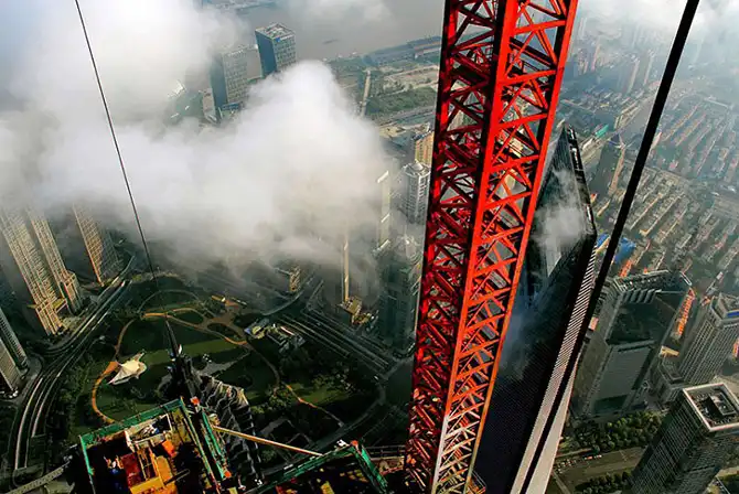 Он работает на самом высоком кране города, на стройплощадке Шанхайской башни.