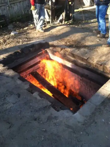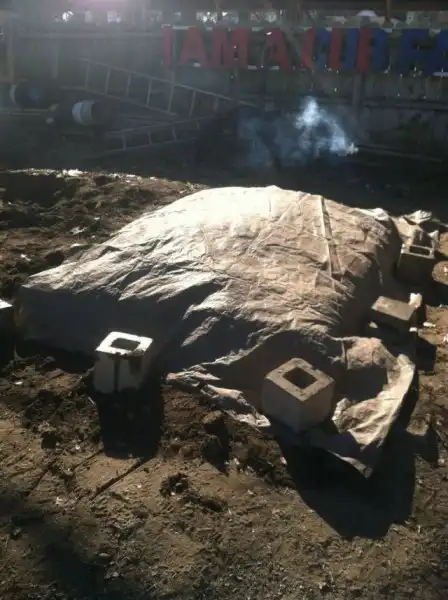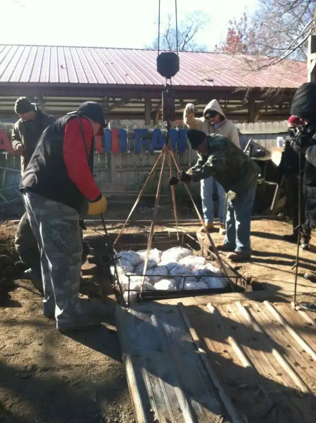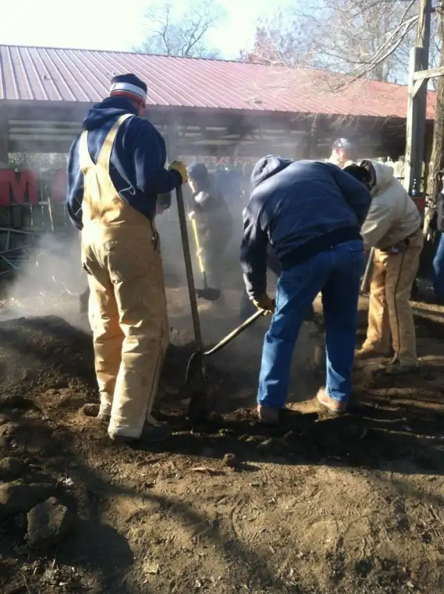 Каждый год эта семья предлагает соседям и знакомым бесплатно приготовить индейку и ветчину в подземной яме, время приготовления 23 часа. Они готовят сотни индюшек на день Благодарения, Рождество и Пасху. Вот несколько фотографий этого процесса.