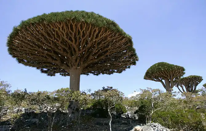 Дерево крови Дракона — одно из самых известных и отличительных растений острова Сокотры.