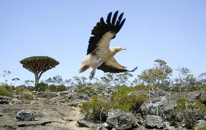 Остров Сокотра находится в Индийском океане и является объектом Всемирного наследия ЮНЕСКО. Здесь находятся сотни уникальных растений и животных, в том числе дерево «Кровь дракона».
