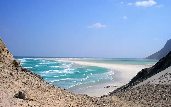 Знаменитый пляж Каланасия. В 2003 году Сокотра вместе с другими островами архипелага была объявлена биосферным резерватом.