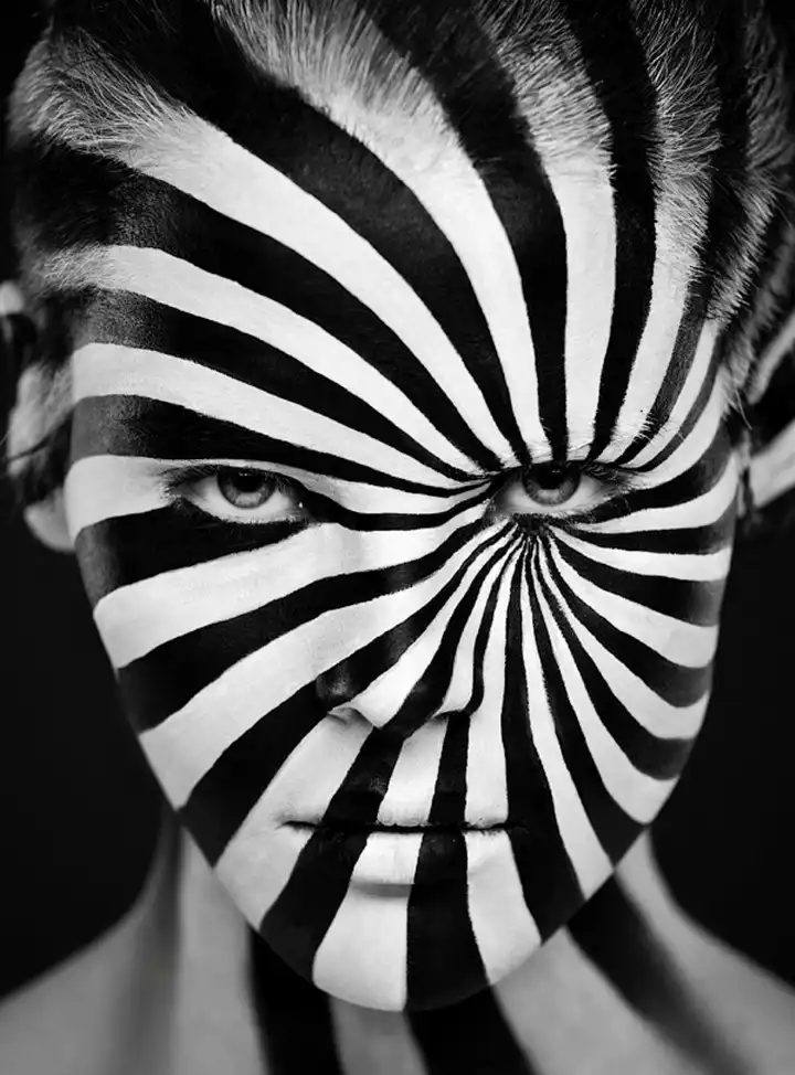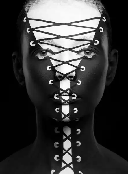 Московский фотограф Александр Хохлов решил игнорировать традиционное представление о макияже. В своей серии фотографий, под названием Weird Beauty, сделанных вместе с визажистом Валерией Куцан, Александр использует лицо женщины как холст, для создания резких, черно-белых узоров. Дуэт выбрал формы и символы, которые вряд ли идут к лицу человека. Лица моделей растворяются на фоне этих рисунков. Контраст между мягкостью лиц моделей и строгими линиями создают красивый эффект. Фотографии выглядят оптическими иллюзиями: сначала ваши глаза видят чертеж и только после этого вы обнаруживаете прекрасные женские лица под ним.