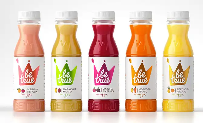 Ребрендинг смузи Be true произвело агентство STUDIOIN. Главный посыл бренда — быть честным и настоящим — воплощён в новом символе — короне, образующейся от всплеска смузи. Недешевый, но очень вкусный и полезный продукт без консервантов в эргономичной бутылке появится на полках магазинов в 2014 году.