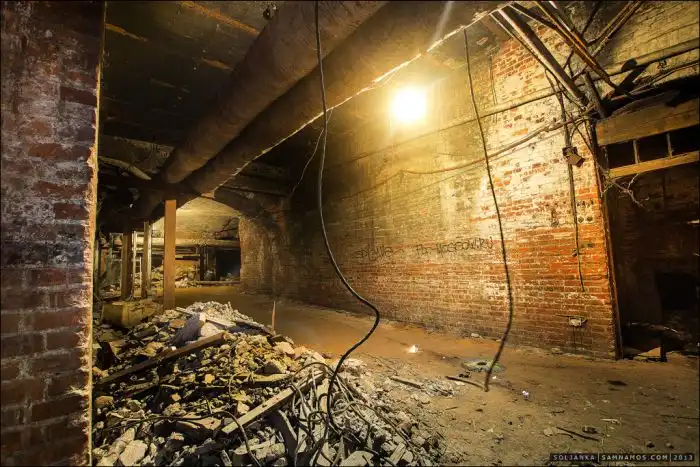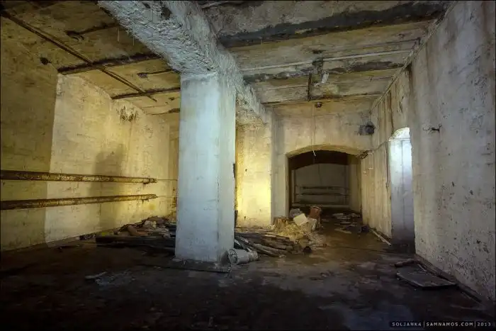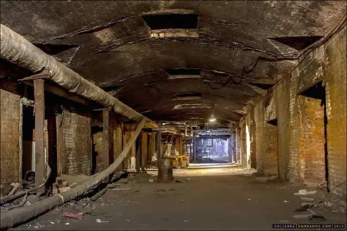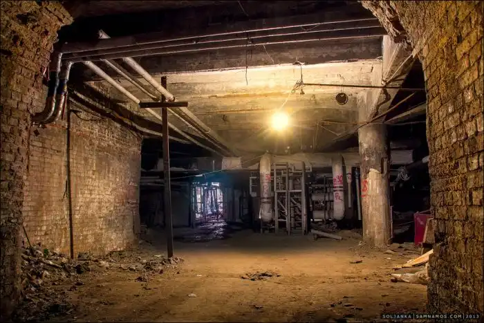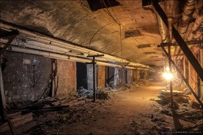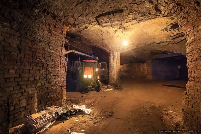 Изначально просторные помещения использовались под хозяйственные и продовольственные склады, но позже здесь разместились подземные гаражи и мастерские для нужд МВД. Однако из- за повышенной сырости, подземелья были со временем брошены. Пустующие подвалы стали местом обитания мародеров и грабителей автомобилей. В бывших подземных гаражах разбирались угнанные с улиц города автомобили и мотоциклы. После прихода перестройки система вновь была покинута и постепенно захламлялась мусором, вывозимым сюда с улицы, и подтапливалась из - за халатности коммунальных служб - коммуникации здесь долгое время не ремонтировались.