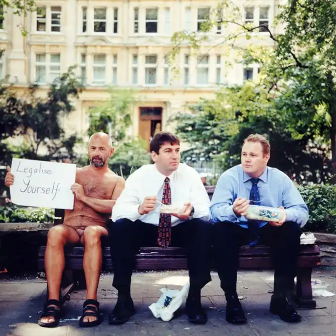 Руаридх Кларк, член общества «Свобода быть собой». Убежденный нудист, все еще борется за свои права на оголение и готов отстаивать свои убеждения и в сто лет.