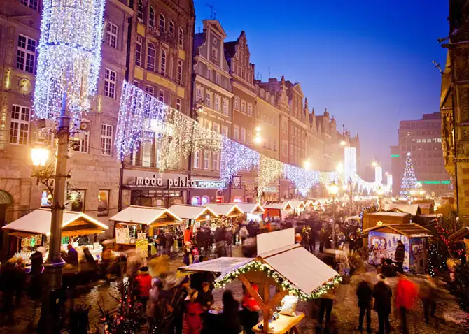 «Jarmark Bożonarodzeniowy», рождественский базар по-польски, в одном из самых крупных и старых городов Польши Вроцлаве начинается со Свидницкой улицы (Ulica Świdnicka) и доходит до рыночной площади этого древнего города. Начиная от мыла ручной работы до изделий из кожи и шерсти, традиционные рождественские сладости наряду с украшениями и сувенирами — все можно купить здесь. Любители вкусно покушать могут отведать блюда как местной кухни, например, типичный копченый твердый сыр «осцыпек», так и традиционные венгерские калачи или литовские колбасные изделия. Согреться посетители ярмарки могут польской разновидностью глинтвейна («grzaniec»), который подают в праздничных кружках. К радости взрослых и детей под открытым небом здесь залит каток.