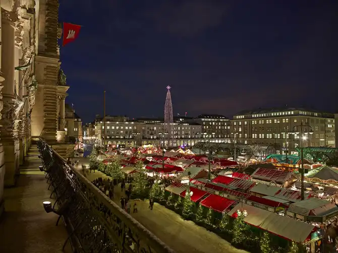 Германия как одна из стран-основательниц традиции рождествеских базаров славится своими ярмарками, и Гамбург, разумеется, не является исключением из правила. Крупнейший и самый популярный рынок находится на площади перед зданием городской ратуши. Все здесь подчинено девизу «искусство вместо коммерции»: эта историческая рождественская ярмарка находится под управлением цирка Roncalli и традиционный глювайн (глинтвейн) здесь подают артисты цирка и клоуны.