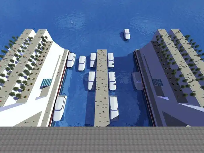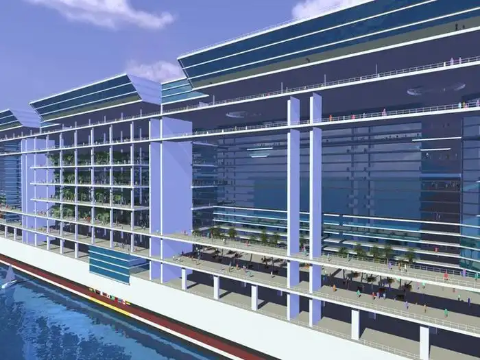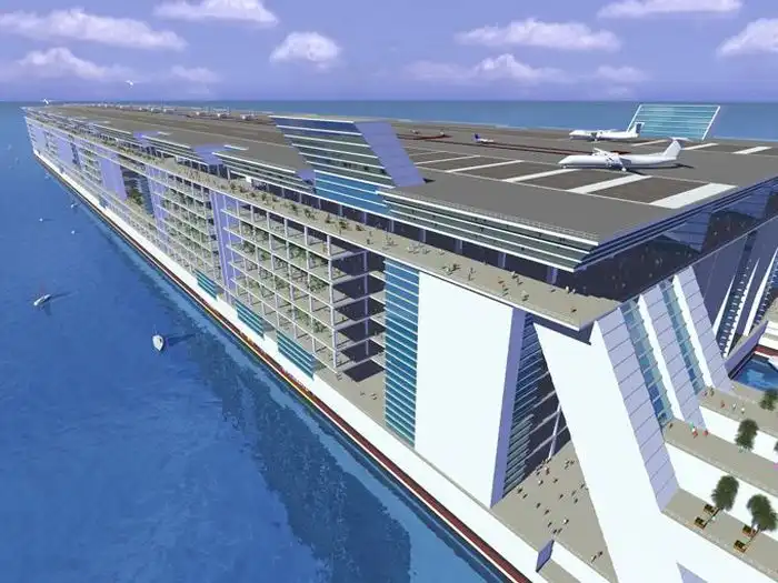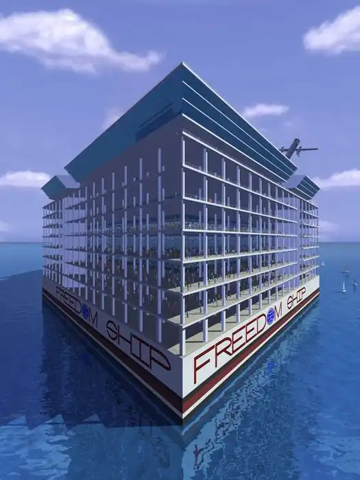 Американская компания из Флориды представила публике разработки своего концептуального плавающего города под названием "Корабль свободы". На его борту смогут с комфортом разместиться около 50 тысяч человек, а на территории судна можно будет увидеть казино, картинную галерею, парк, торговый центр и всё необходимое для комфортной автономной жизни. По предварительным данным, стоимость "Корабля свободы" будет составлять примерно 10 миллиардов долларов.