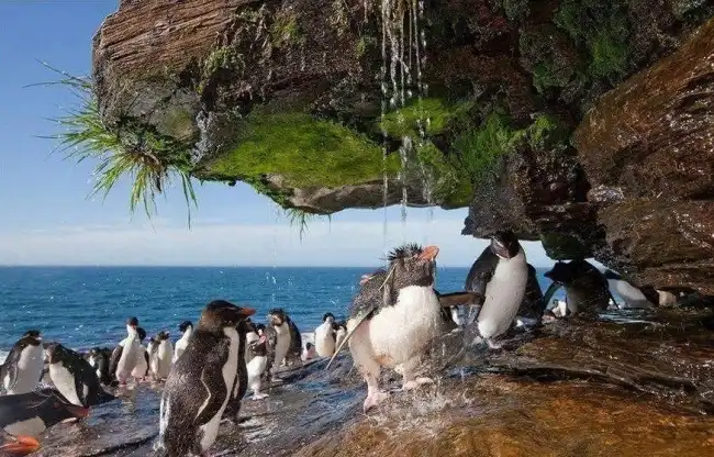 Пингвины принимают душ на Фолклендских островах, Южная Америка