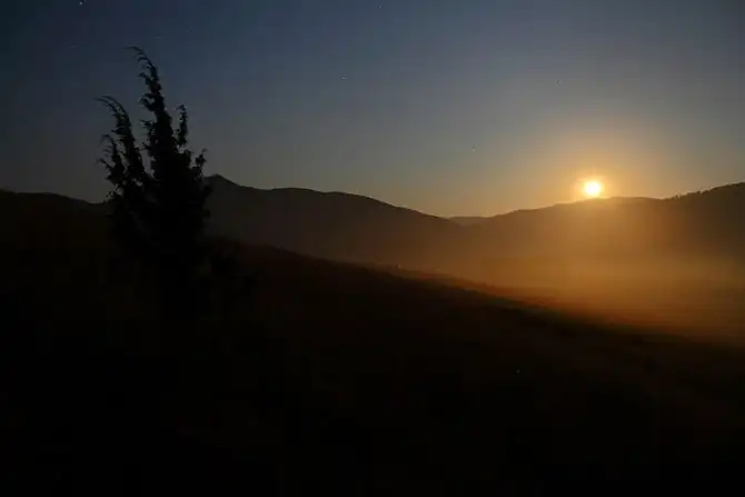 А тем временем луна уходит за горы и уступает свои владения солнцу.