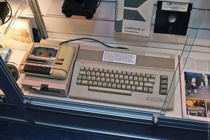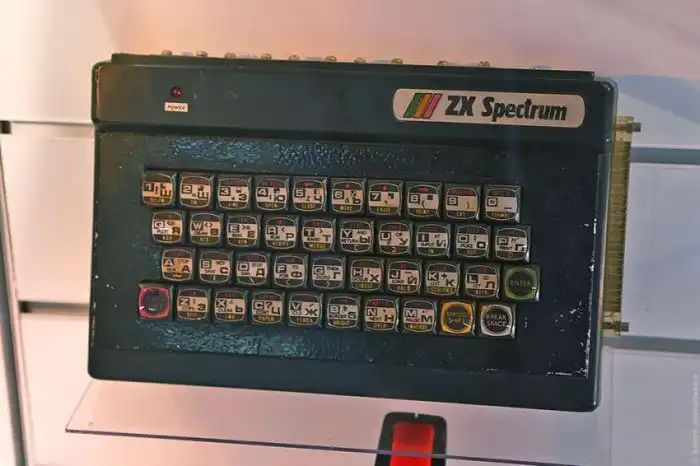 Культовый комп своего времени ZX Spectrum английской компании Sinclair. У некоторых моих друзей были такие. Фишка его в том что он подключался к обычному телеку, к нему подключался магнитофон и на кассеты писались программы, ну и читались с них же.