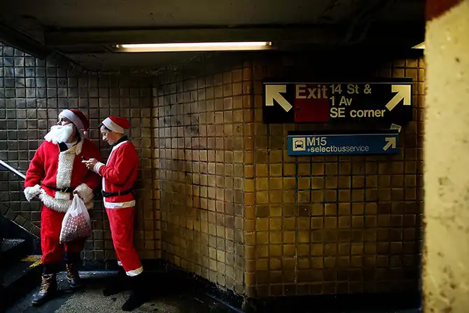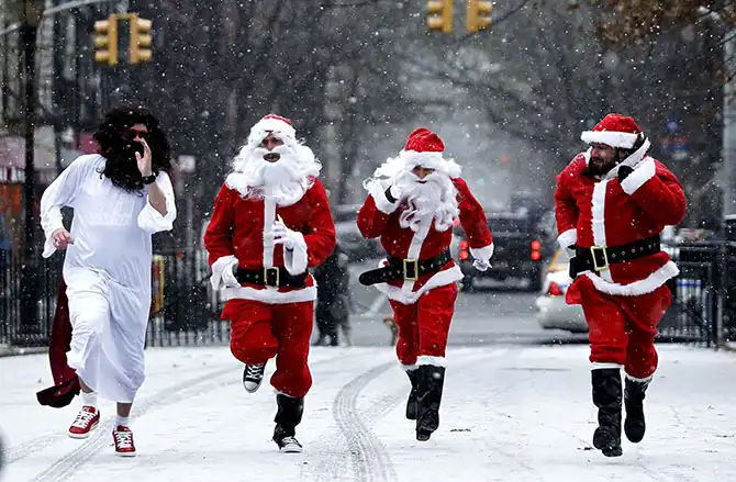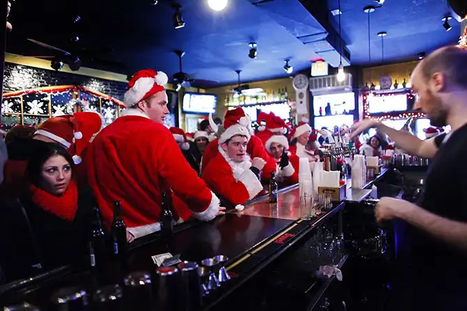 Вообще, в Нью-Йорке Санты бегали повсюду. Особенно по пивным барам.