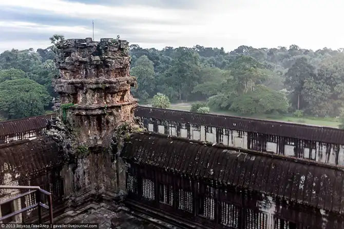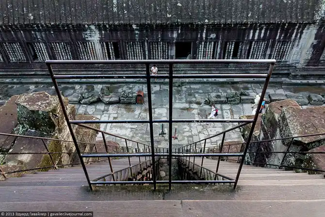 За дополнительные 5 долларов, заплаченные охраннику (камбоджиец может прожить на них несколько дней), я поднялся на самый верх центральной части храма.