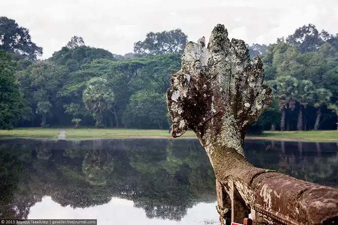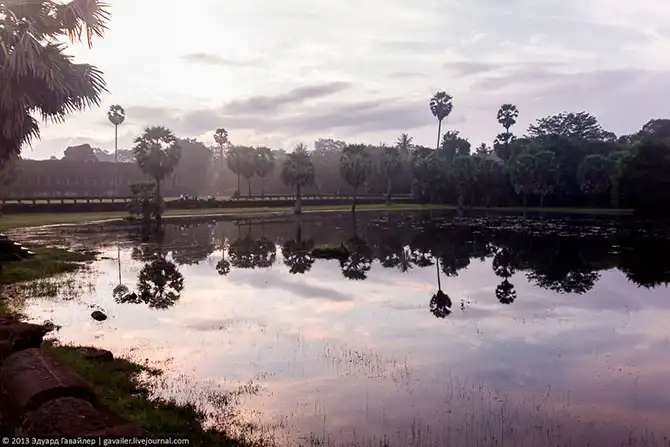 Вокруг Ангкор-Вата ров с водой.