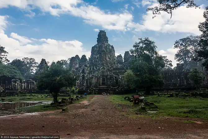 Ангкорский археологический парк при Сиемреапе (Siem-Reap, также Сием-Реап, Сием-Рип, Симрип), стоящий под защитой ЮНЕСКО, расположен на территории 400 квадратных километров и включает два основных комплекса зданий: храм Ангкор-Ват (Angkor Wat) и храм Байон в Ангкор-Тхоме.