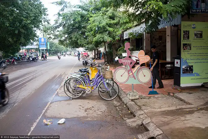 Из Сиемриапа к храмам я ездил на велосипеде. Несколько фотографий с дороги: