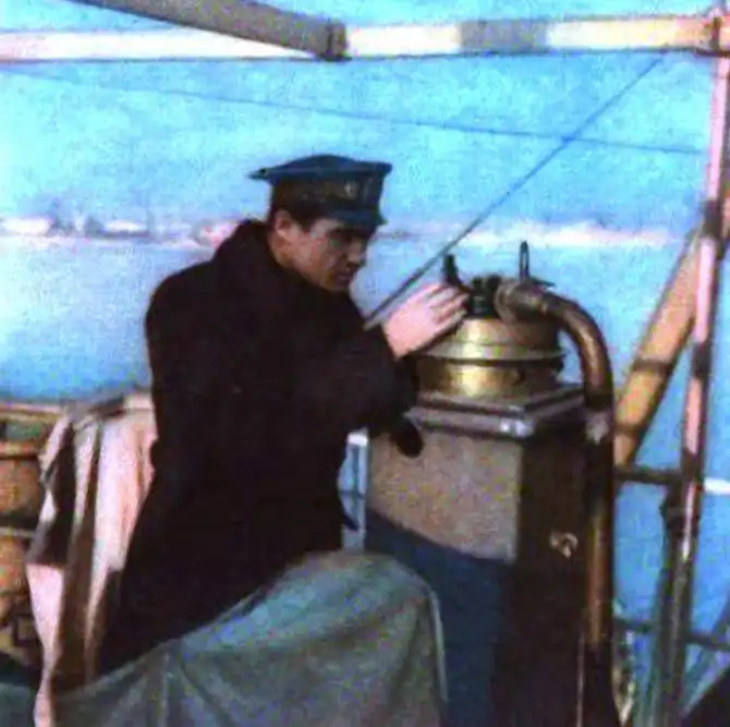 Теплоход «Юно-Сахалинск» с грузом продовольствия уходит на южный Сахалин. Третий помощник капитана Владимир Дровалов проверяет навигационные приборы. Одесский порт. Фото А. Кнорринг.
