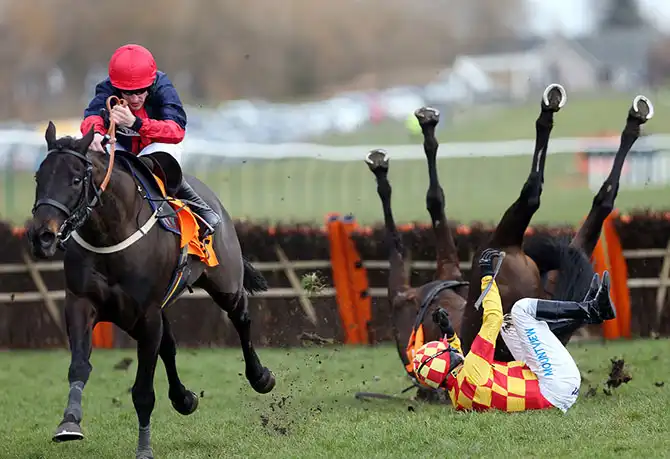Лошадь упала во время скачек с препятствиями в шотландском городе Эйр.