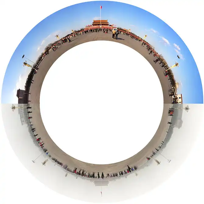 Коллаж из фотографий площади Тяньаньмэнь в Пекине: в нижней части — изображения неба 23 января 2013 года, когда уровень загрязнения атмосферы достиг критического значения.