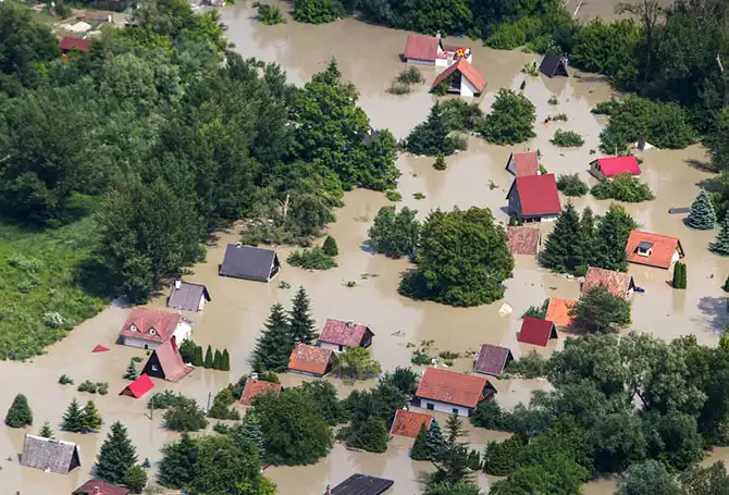 Вид на затопленные районы столицы Словакии — Братиславы. В этом году уровень затопления достиг рекордной отметки в 1, 030 см, но заграждения не допустили затопления центра города.