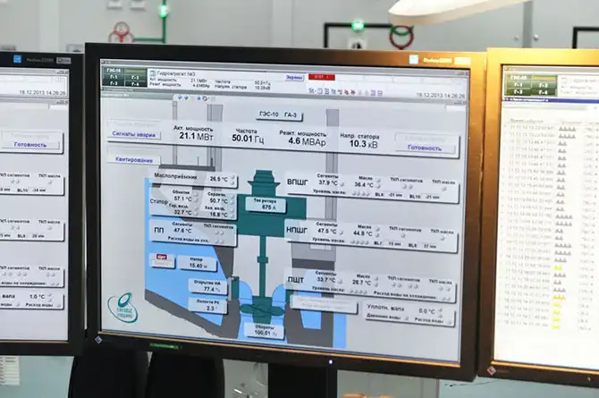 После реконструкции, чтобы пустить гидроагрегат или изменить параметры его работы, достаточно одного клика. Установлена полностью автоматизированная система управления станцией на базе контроллеров Metso DNA.