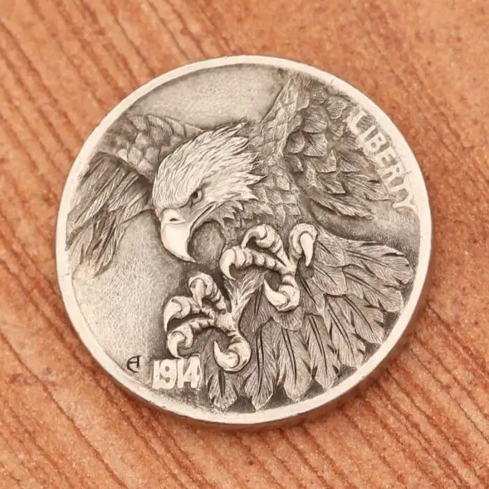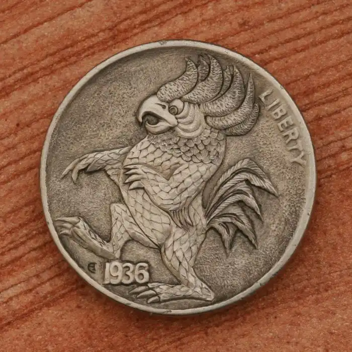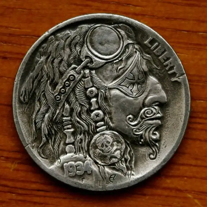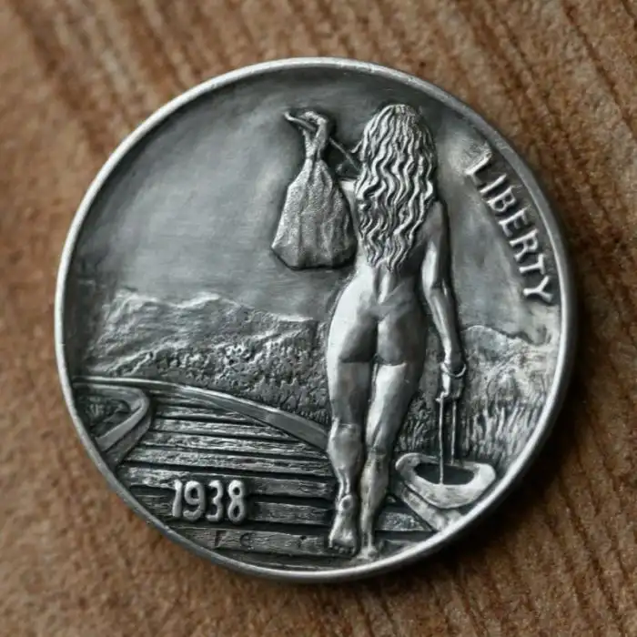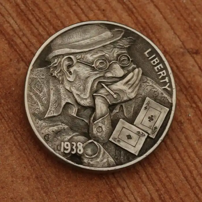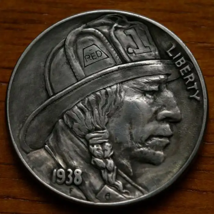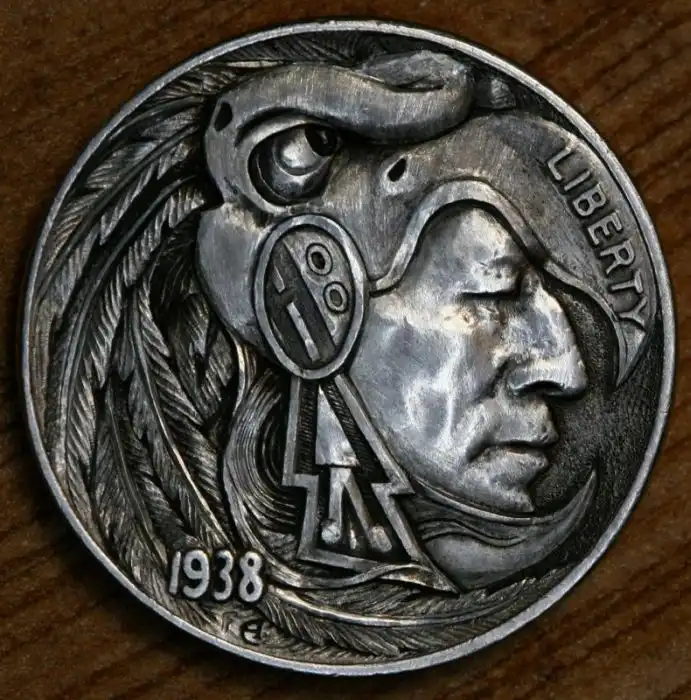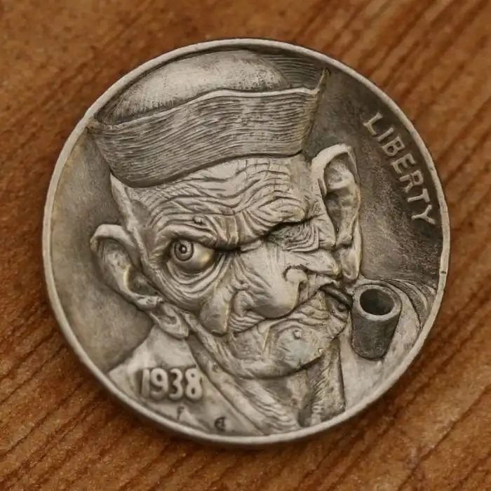 The hobo nickel is a sculptural art form involving the creative modification of small-denomination coins, essentially resulting in miniature bas reliefs. The nickel, because of its size, thickness, and relative softness, was a favored coin for this purpose. However, the term hobo nickel is generic, as carvings have been made from many different denominations.
