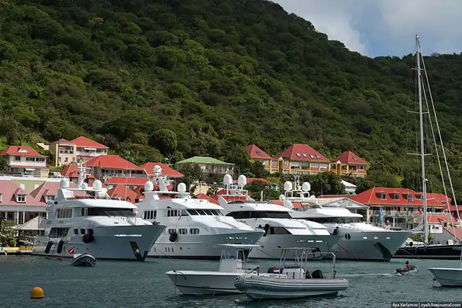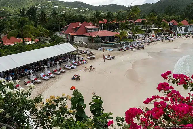 Был как-то в океане островок, Сен-Бартелеми. Обычный маленький вулканический островок, не было на нем ничего. Но острову повезло: в 1957 году Дэвид Рокфеллер (внук того самого Рокфеллера) приобрел два участка земли на Сен-Бартелеми. Вслед за банкиром на остров потянулись Ротшильды, Форды и другие известные богачи. Так остров стал местом отдыха миллионеров. Хорошие рестораны, дорогие магазины, клубы, роскошные отели, безопасность, что еще нужно? Недавно остров облюбовали русские. Началось все с того, что в 2009 году Роман Абрамович купил дом Дэвида Рокфеллера. Ну а дальше подтянулись все друзья.