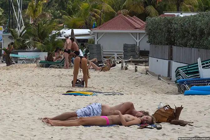 В аэропорту Сен-Барта на выходе лежат стопки глянцевого журнала. Журнал на русском языке. Печатают его в Питере, главный редактор – некая Яна Толстихина. Журнал сочится гламуром, у меня до сих пор руки липкие. Как написано в презентации, он для тех, «кто знает толк в эксклюзивном отдыхе». В общем, «солидный отдых для состоятельных господ». В журнале рассказывается, что на острове надо купаться, ходить по дорогим ресторанам, покупать украшения и одежду, ходить на СПА-процедуры и обязательно посещать все русские тусовки в самых дорогих клубах. В журнале есть несколько забавных интервью в стиле девичьих анкет в пятом классе: «Какой твой любимый ресторан для ужина? Какой твой любимый отель? Какой твой любимый СПА-салон?». В общем, сразу понятно, что на острове есть чем заняться.