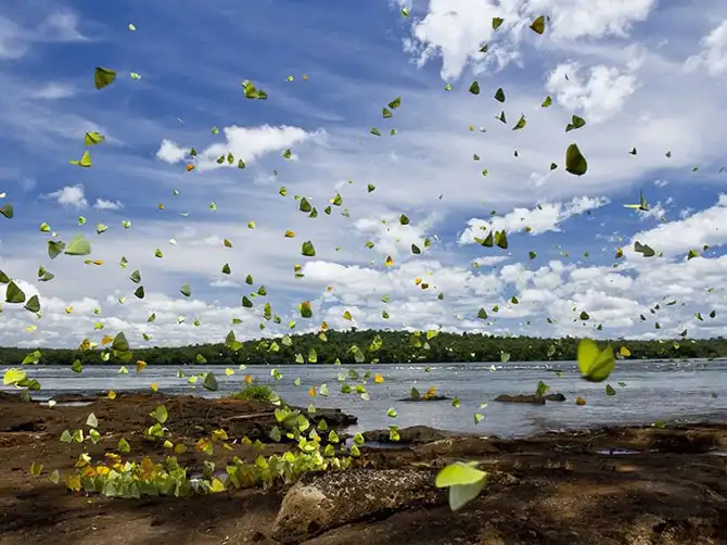 Большие скопления бабочек обычное дело для берегов реки Игуасу на границе Бразилии и Аргентины.