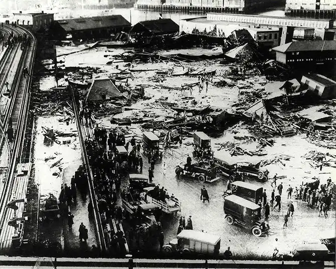 В результате два миллиона галлонов патоки, которые должны были пойти на изготовление рома, захлестнули насмерть 21 человека. Извлеченные из патоки тела было практически невозможно опознать.