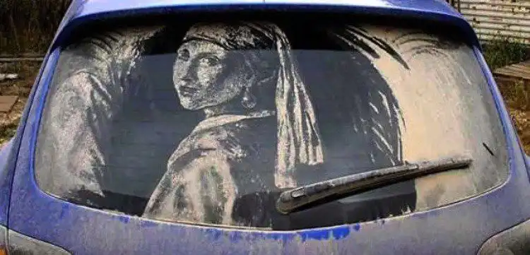 Есть такой вид художественной деятельности, который называется "reversed graffiti": это когда рисунок на машине создается не с помощи аэрозоля, а очищением определенных загрязненных участков